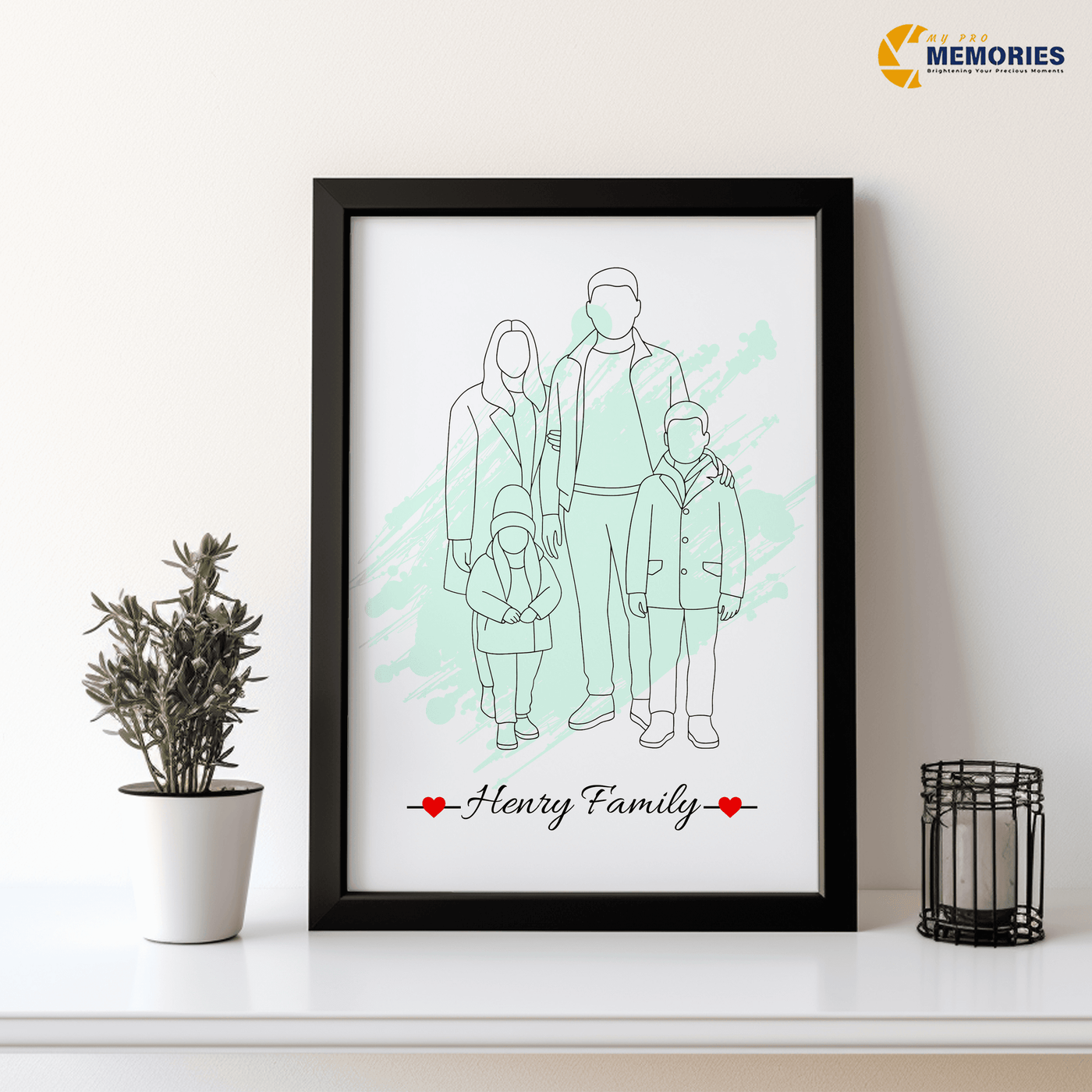 Turn your favorite family photo into timeless art with our One Line Drawing Custom Portrait — a minimalist, hand-drawn illustration that beautifully captures your loved ones in a clean, modern style.