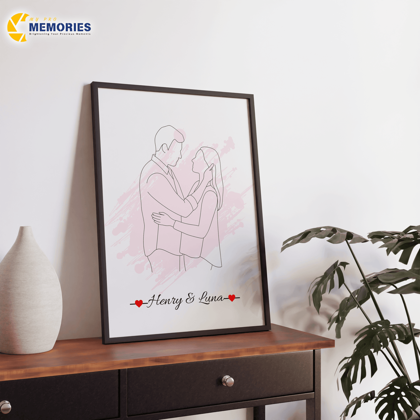 Each Custom Line From Photo is transformed into a sleek Custom Couple Portrait or Family Drawing, featuring your unique poses, pets, and personal details. Printed on high-quality art paper and available in multiple sizes and framing options, this Personalized Wedding Anniversary Gift or Custom Family Gift makes a heartfelt keepsake for any occasion.