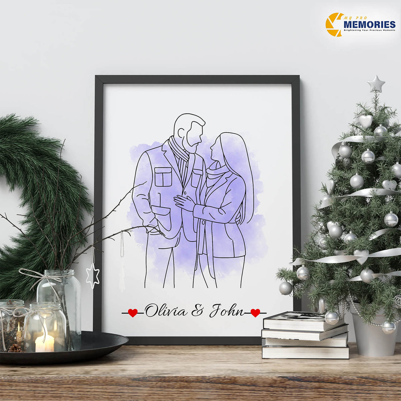 Each Custom Line From Photo is transformed into a sleek Custom Couple Portrait or Family Drawing, featuring your unique poses, pets, and personal details. Printed on high-quality art paper and available in multiple sizes and framing options, this Personalized Wedding Anniversary Gift or Custom Family Gift makes a heartfelt keepsake for any occasion.