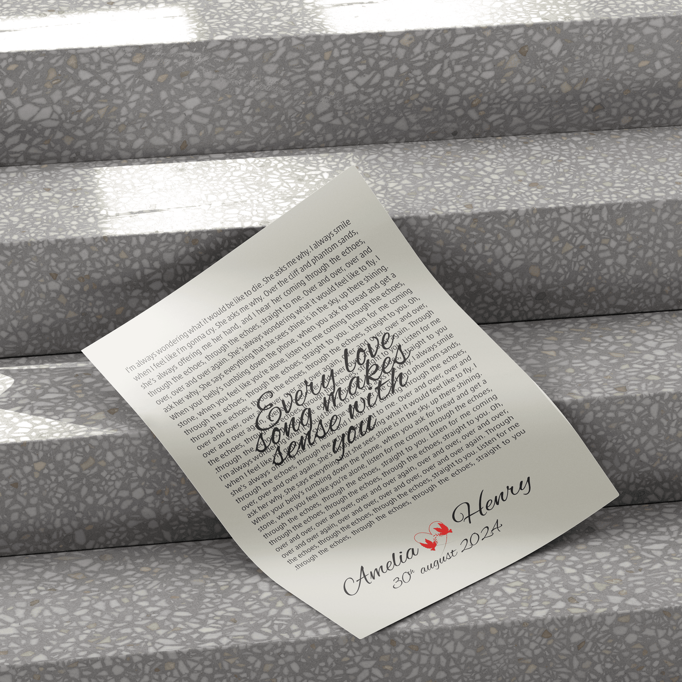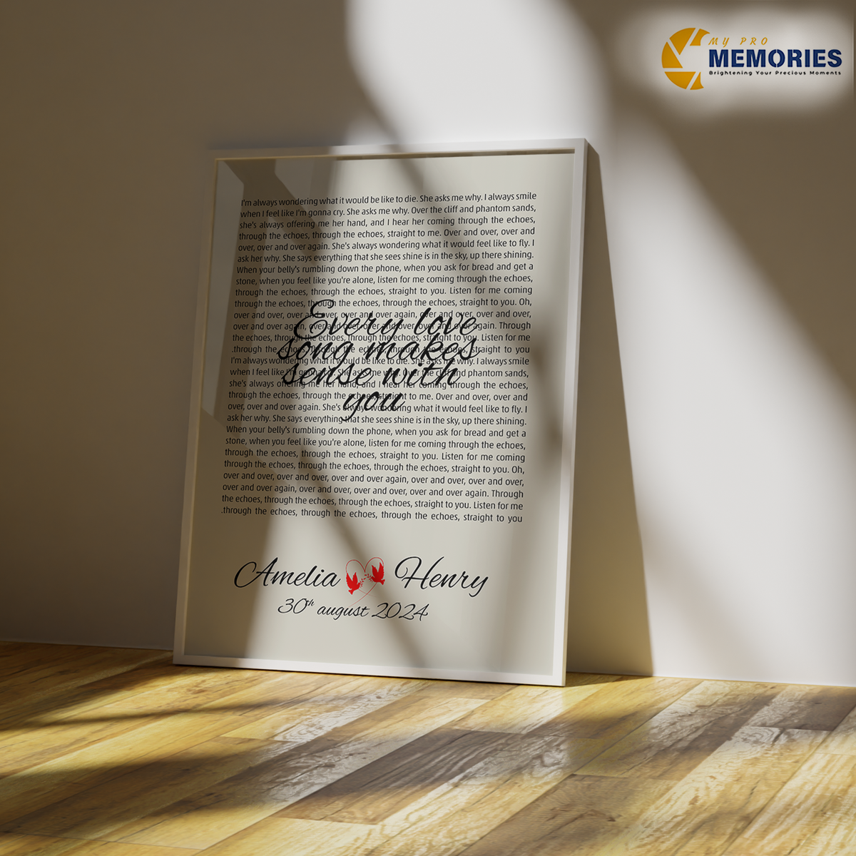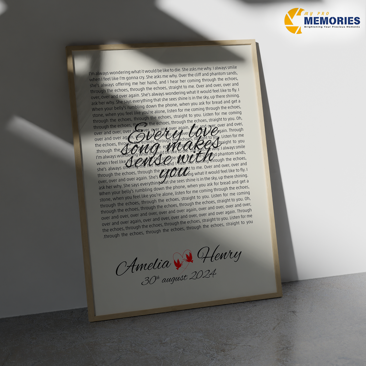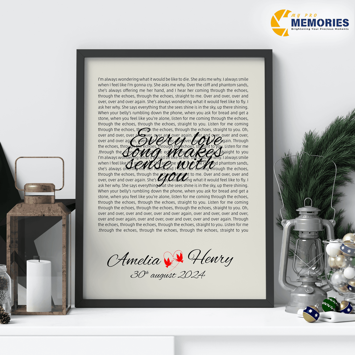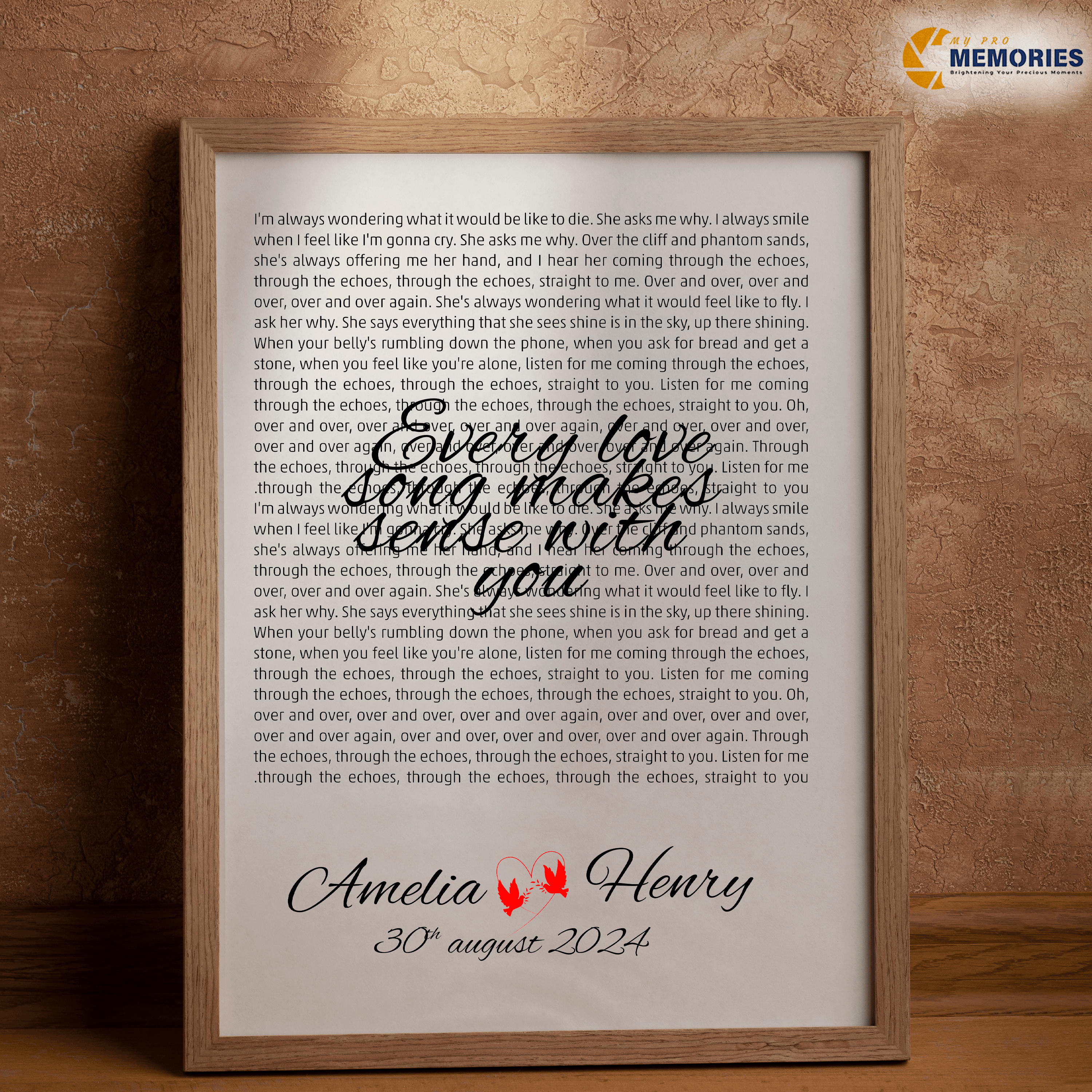 Personalised Song Lyrics Print with Frame – Custom Quote, Names & Date – Romantic Word Art Poster