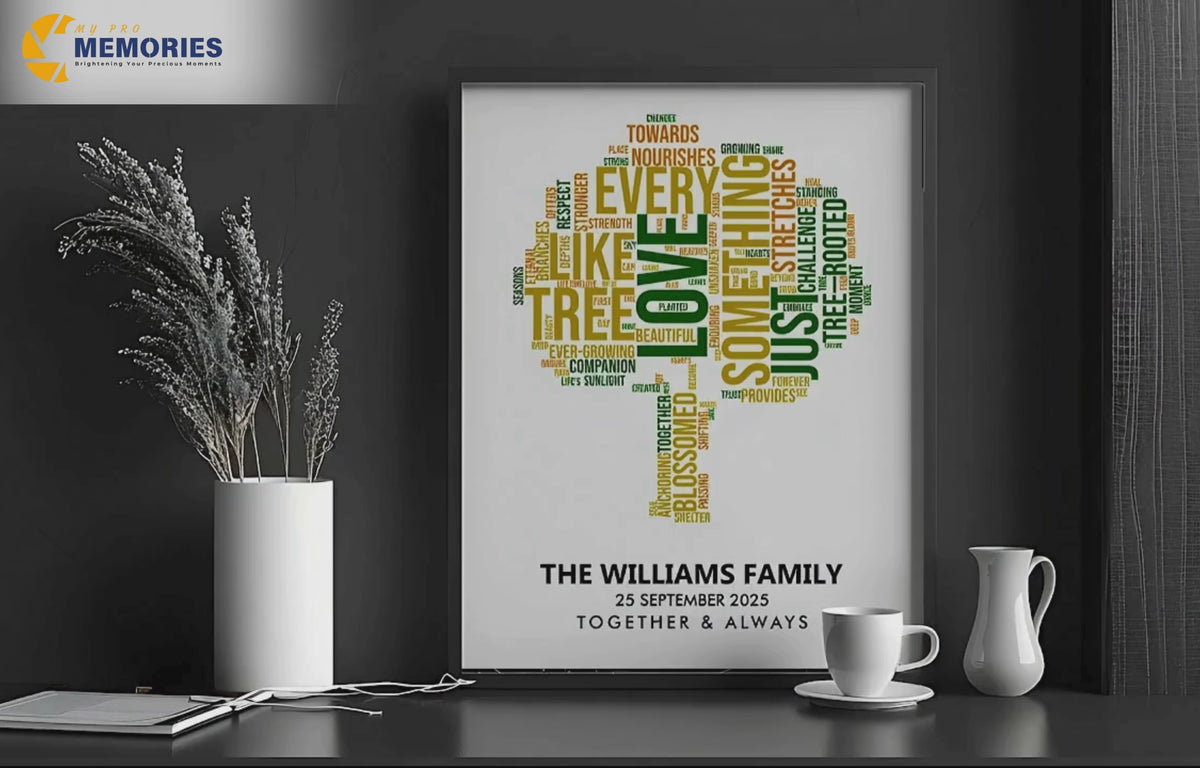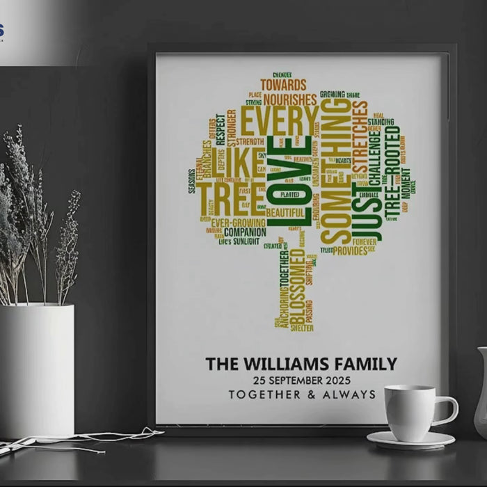 personalised family tree print, Tree Word Cloud, Tree Shape Word Art
