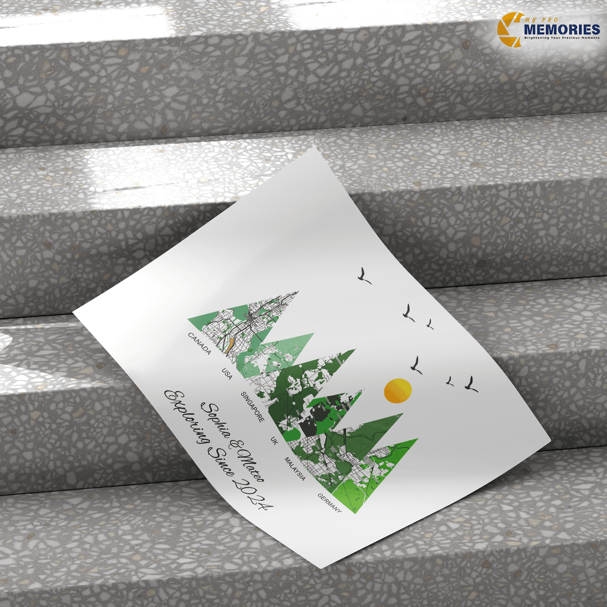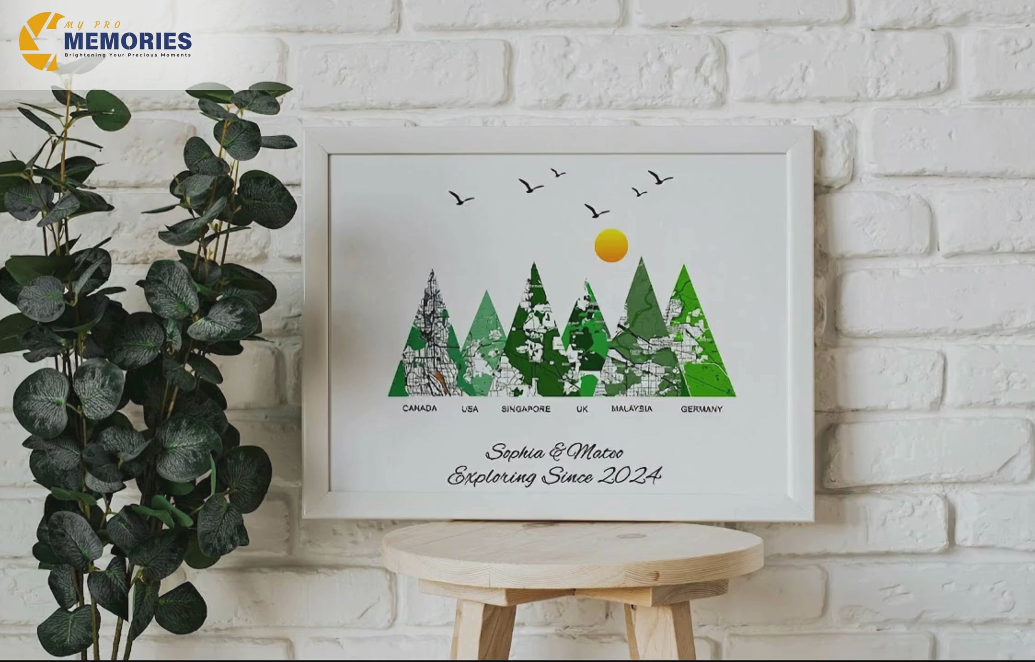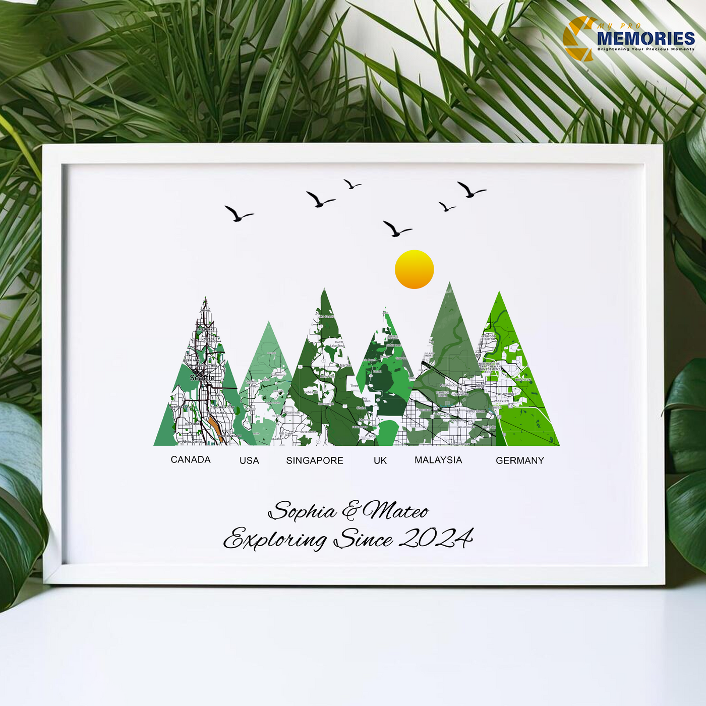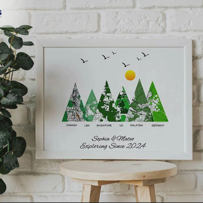 Personalised Framed Travel Map Poster – Custom Countries, Names & Date – Adventure Wall Art Gift for Couples