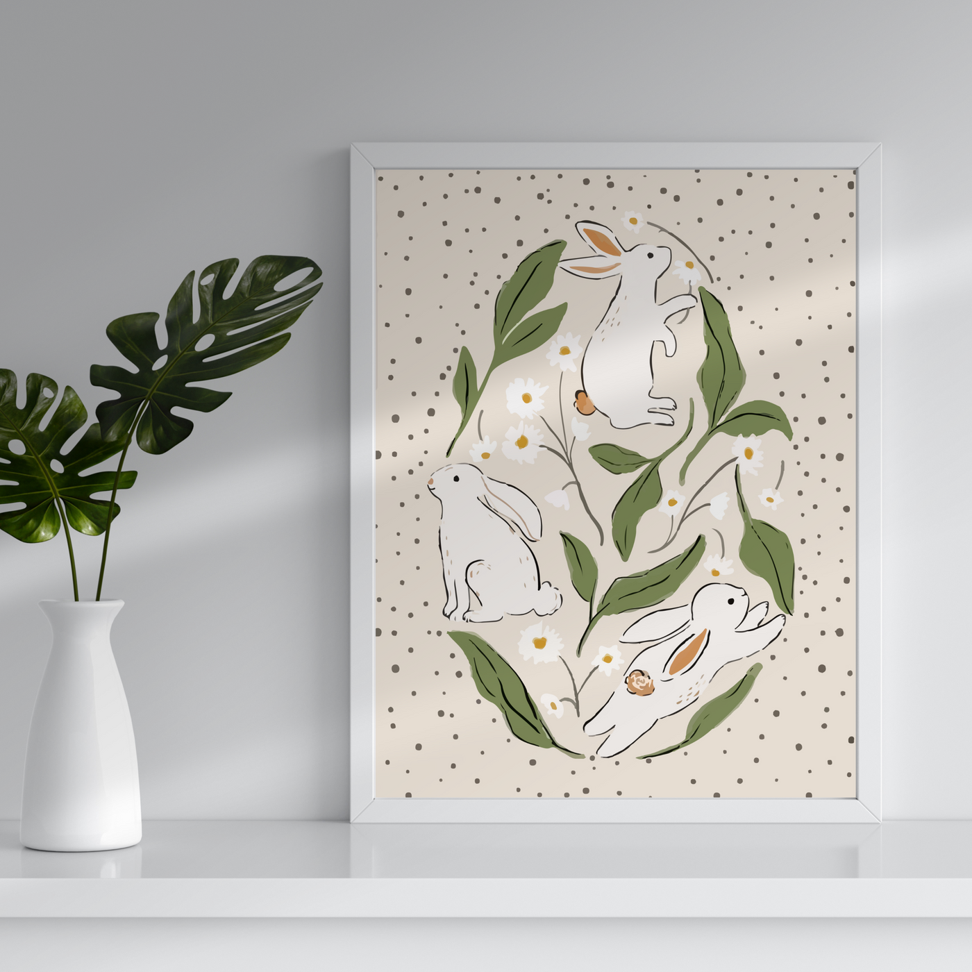 • Elegant Easter-themed print featuring a floral bunny silhouette in a minimalist, boho-inspired style