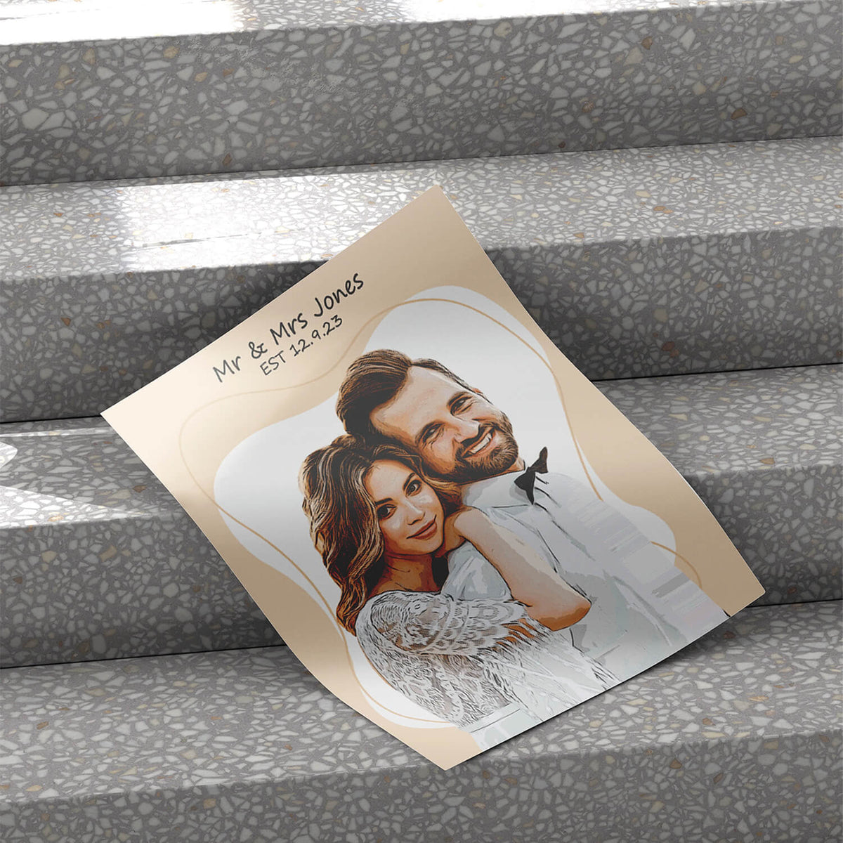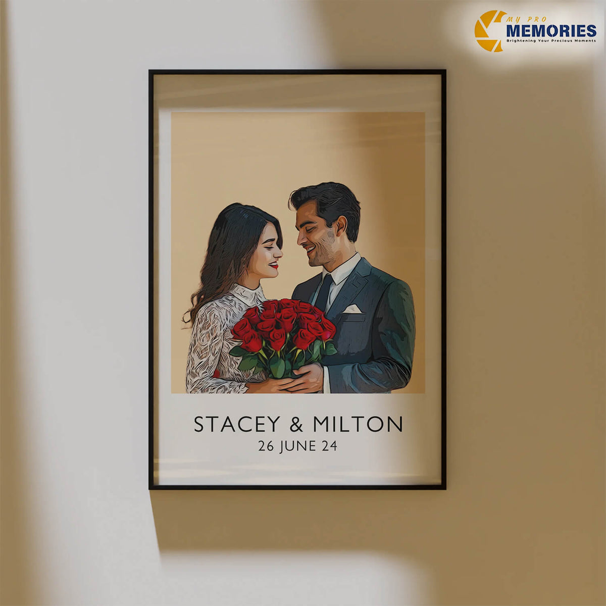 Custom Names & Date: Add the couple’s names and wedding date to the illustration, making this piece even more personal and memorable.