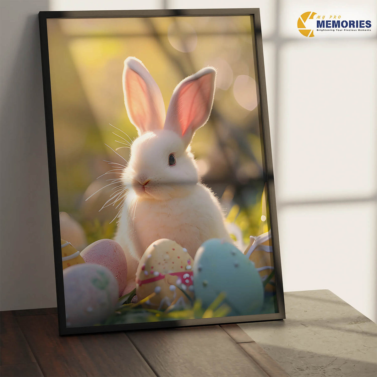 Featuring a sweet bunny surrounded by Easter eggs, this artwork is perfect for nurseries, bedrooms, and play areas.