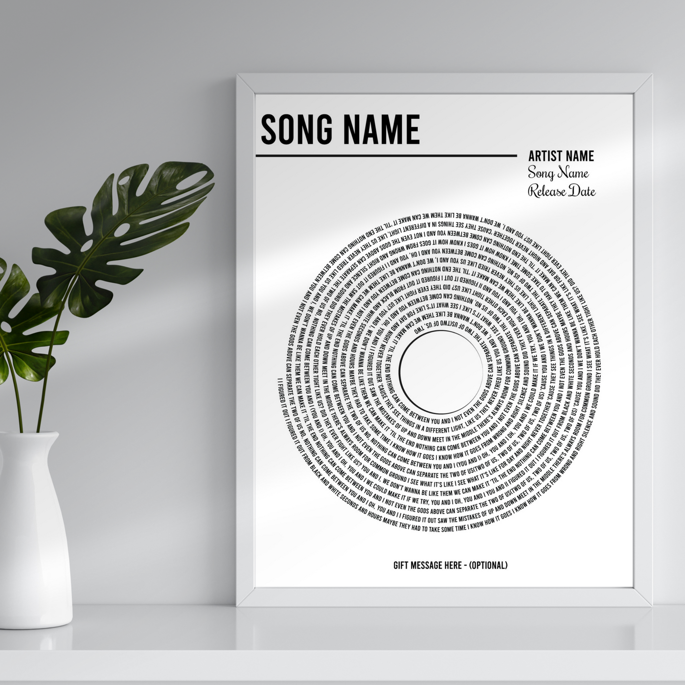Personalized Song Lyric Vinyl Print – Framed Music Wall Art